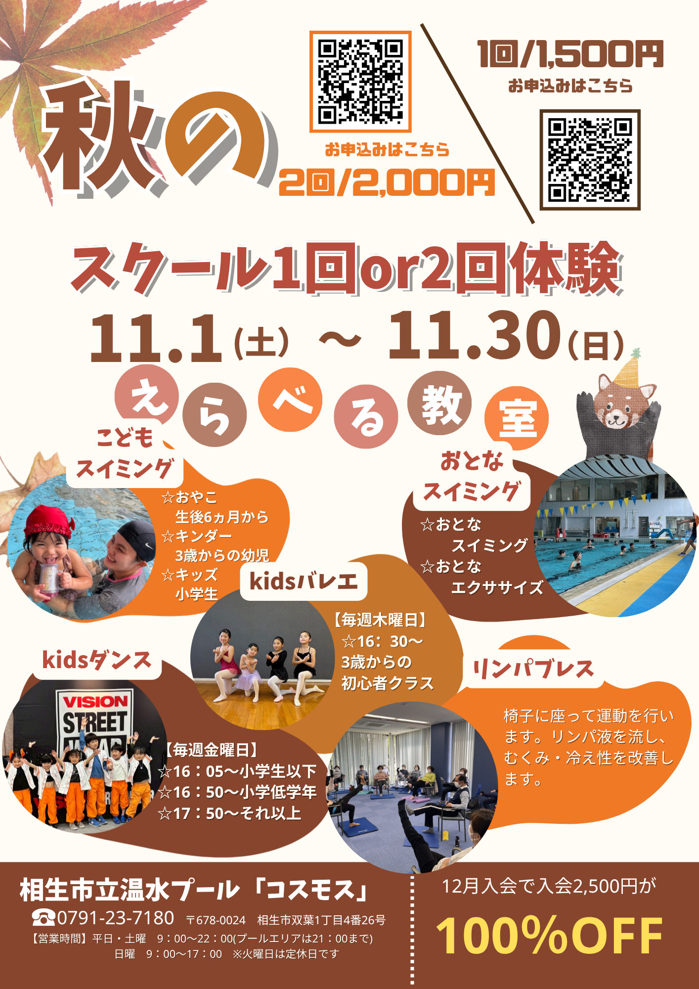 11月 2回体験教室 【11月2回体験教室】 お申込みはこちら↓(2回体験の方) https://tayori.com/form/31fc59b884fde576eb25337142c2b9fc59574087/